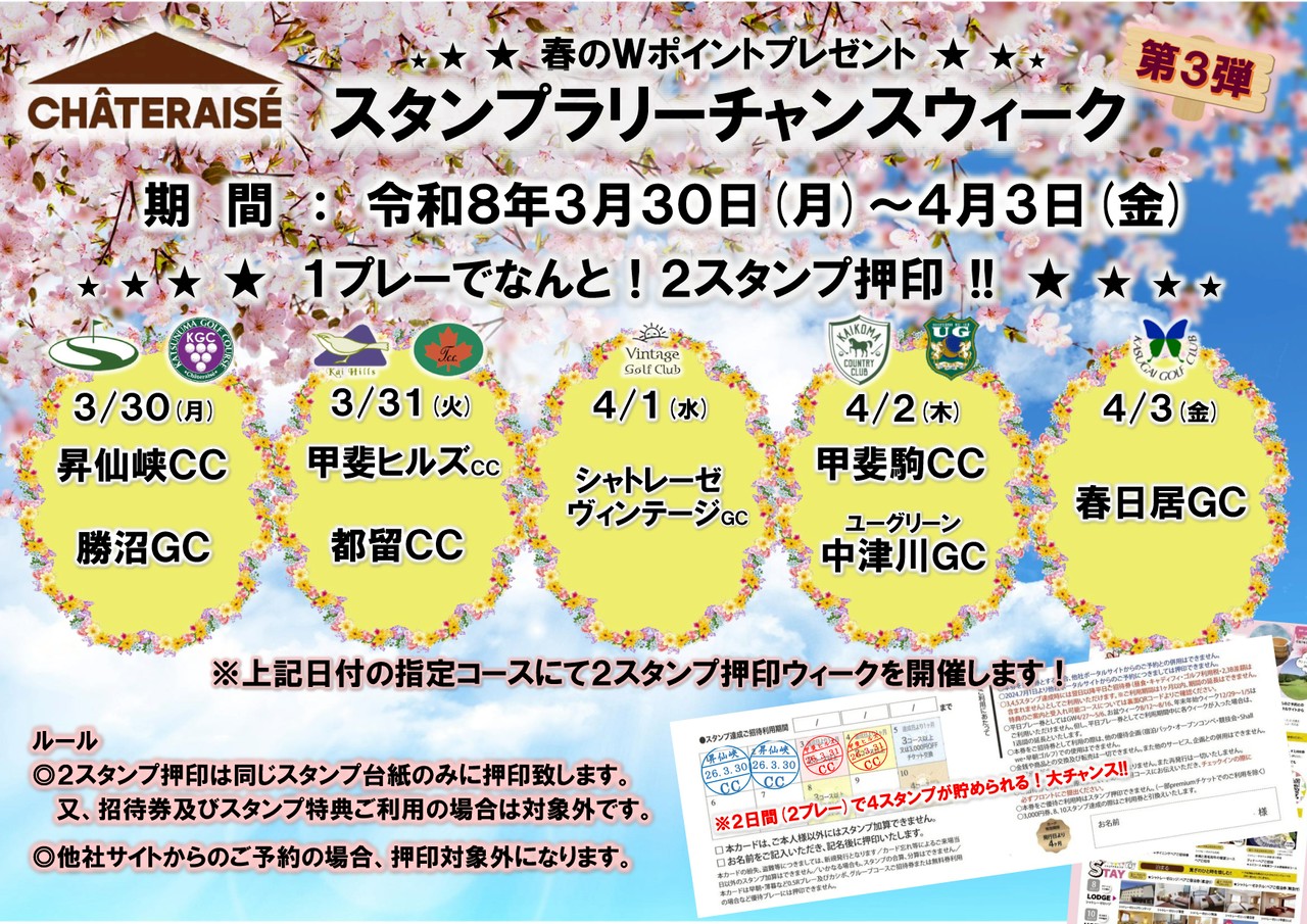 スタンプラリーイベントのご案内【指定日に指定ゴルフ場にてスタンプを2つ押印】